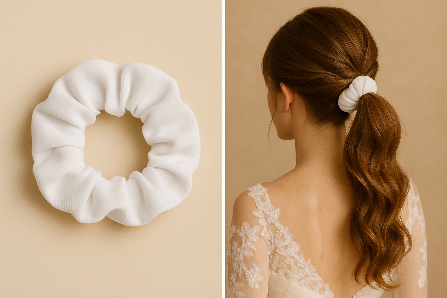 ✨ Chouchou élégant en tissu ✨ Fait main avec soin, ce chouchou tout doux sublime vos coiffures sans casser les cheveux.Idéal pour un look chic au quotidien ou une touche romantique pour les grands jours 💍💖 ✔️ Confortable✔️ Réutilisable✔️ Fabriqué avec amour dans mon atelier 🧵