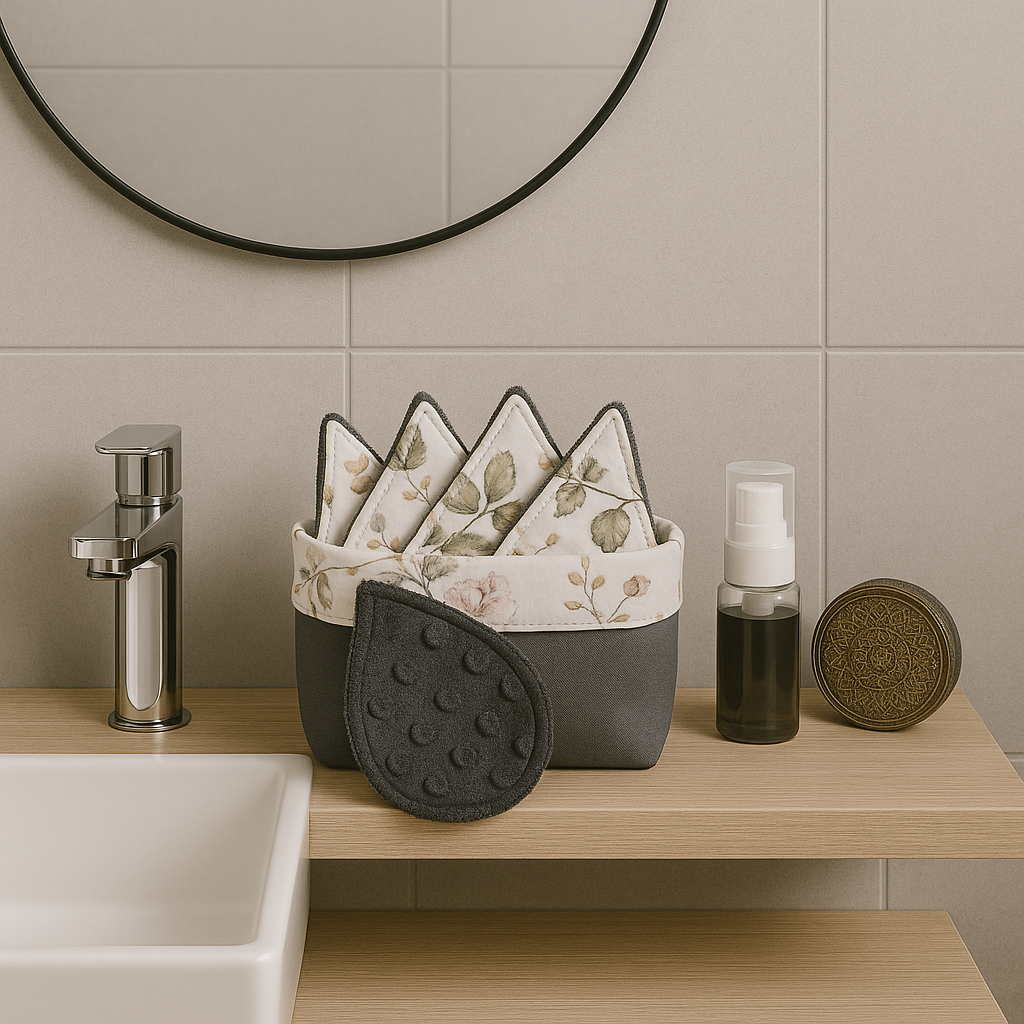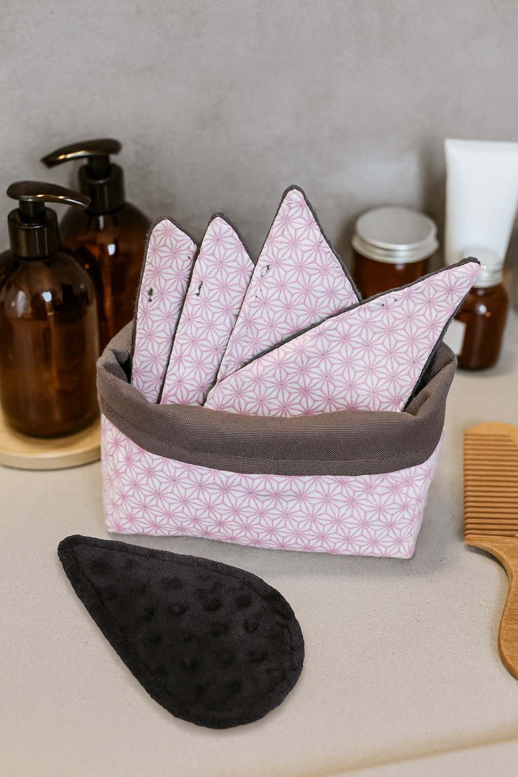 🌟 Chaque lot contient 4 lingettes 100% coton et minky , présentées dans leur joli panier assorti pour une salle de bain bien rangée et stylée.